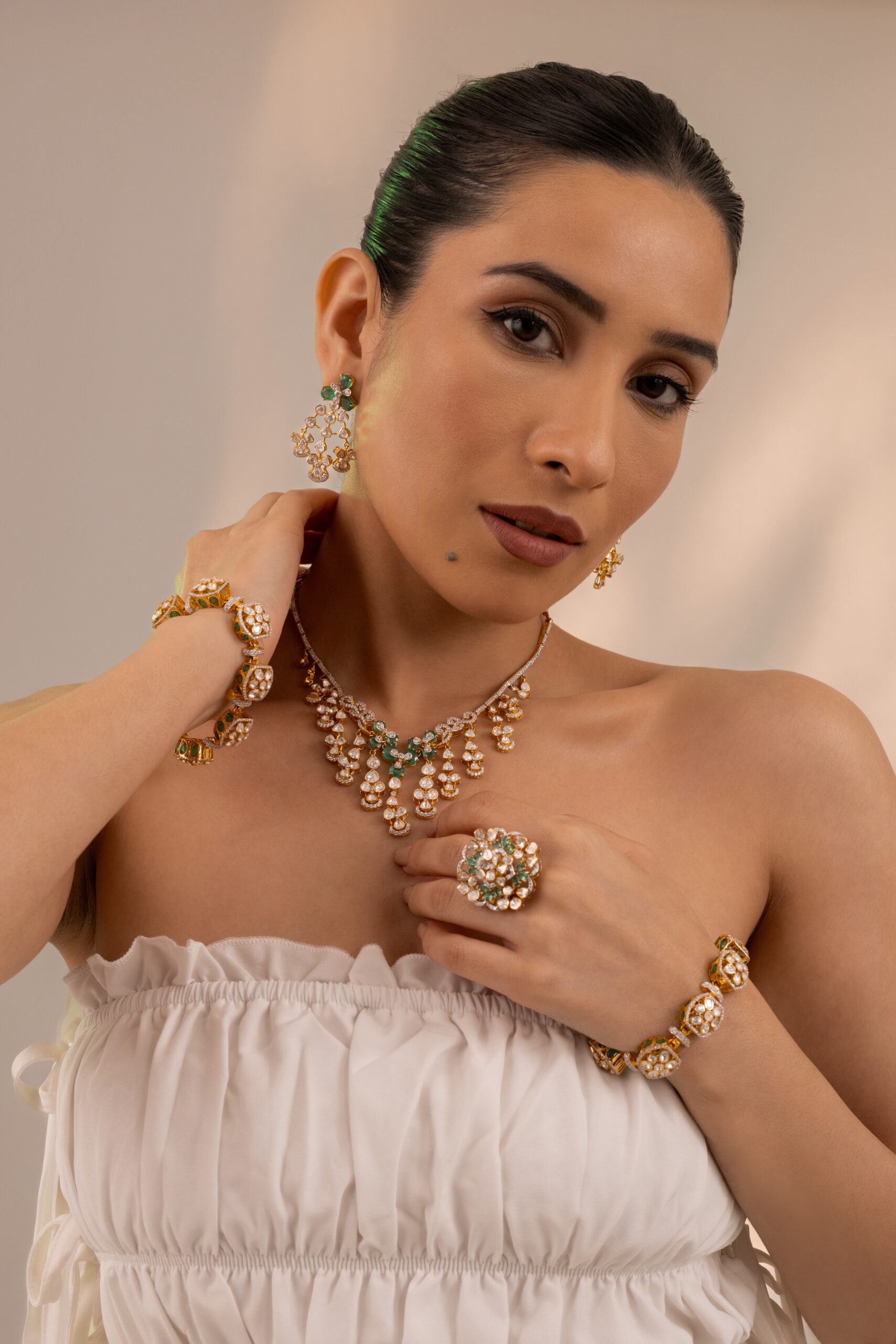 Radiate elegance with this timeless 18ct gold jewellery set. Designed for modern women who appreciate classic craftsmanship, this set brings a refined touch to every celebration. Perfect for weddings, gifting, or enhancing your festive wardrobe.